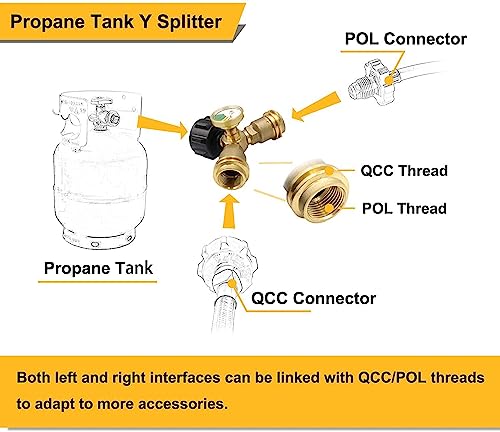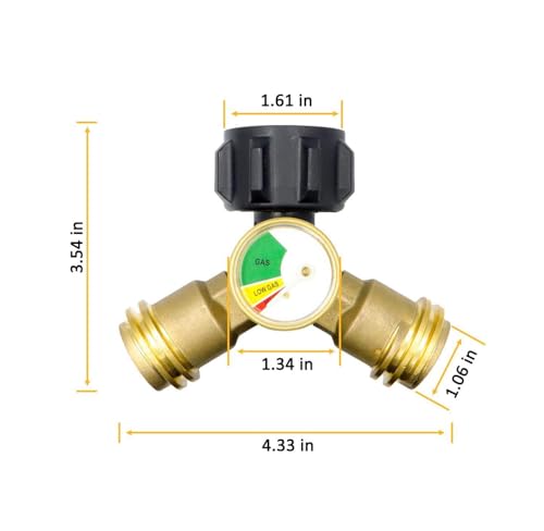Specification: Y-split-adapter met manometer, propaantankadapter, Y-split-adapterconnector voor propaantanks, voor kampeergrills voor buiten
