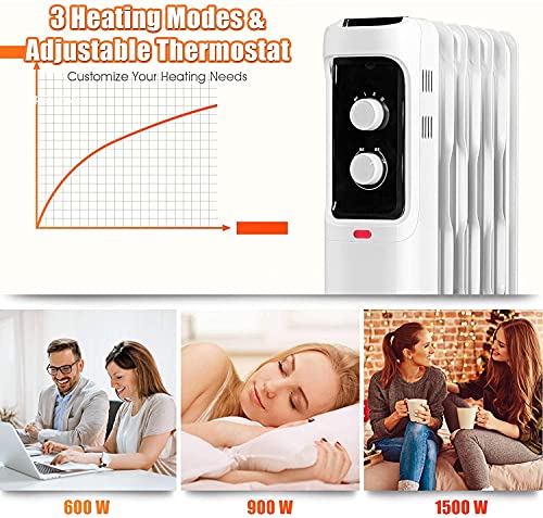 Olieverwarmer Oliegevulde radiator Elektrisch 1500W oliegevulde radiatorverwarming, ruimteverwarmer Radiator met 3 warmte-instellingen, verstelbare tat, draagbare radiator